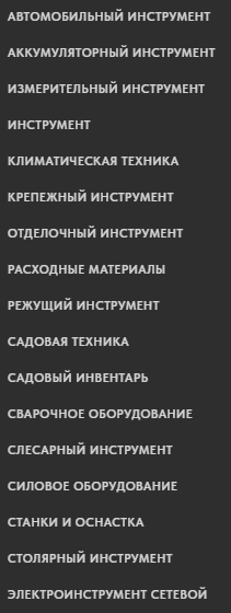 На сайте «PROFI TOOLS» доступны несколько способов поиска и выбора товара.
